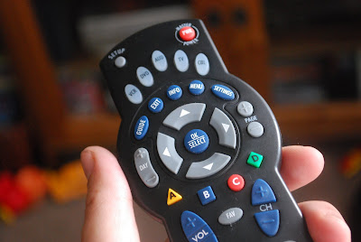 After much thought and finally a deal we couldn't pass up (free home phone for a year!) we switched to a bundle from our cable company and upgraded to digital cable! With that we got a fancy controller that Xander LOVES, haha.